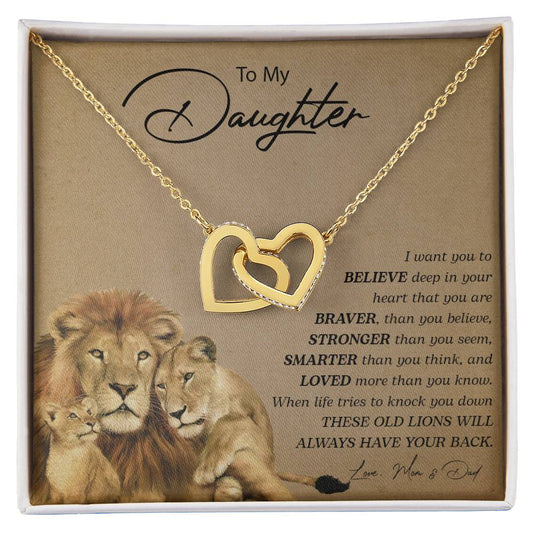 To My Daughter | You Are Braver Than You Believe - Interlocking Hearts necklace